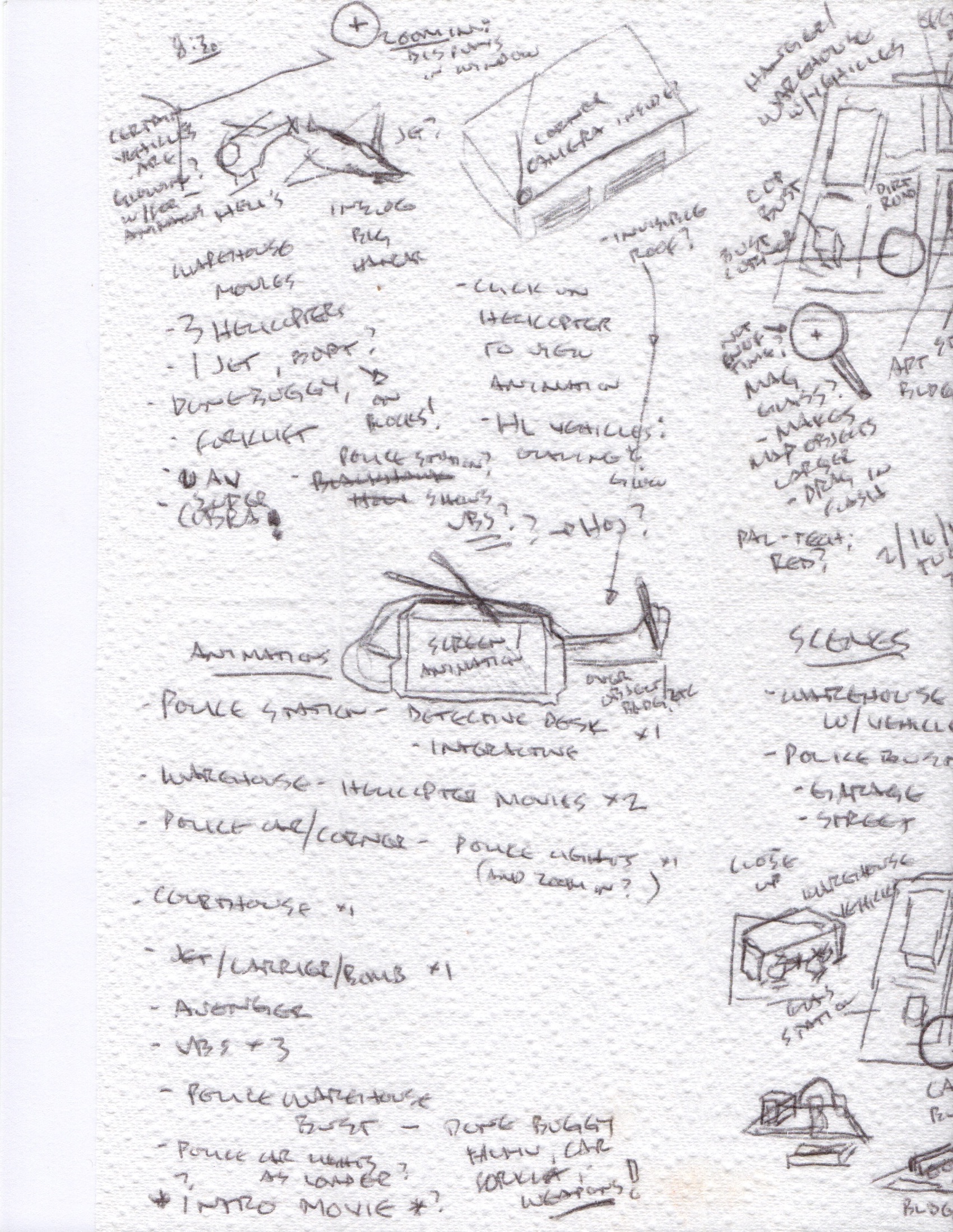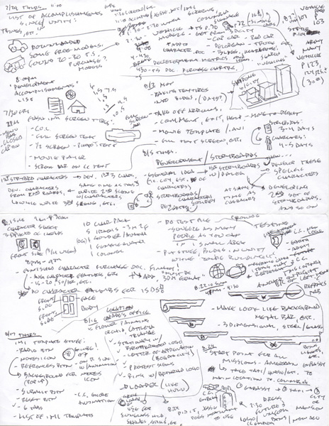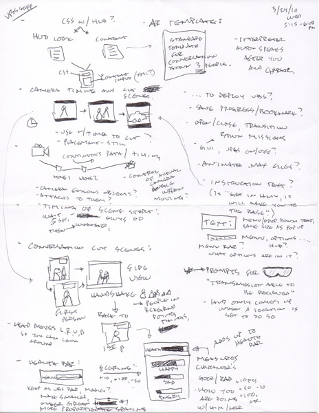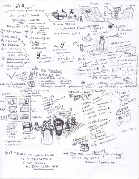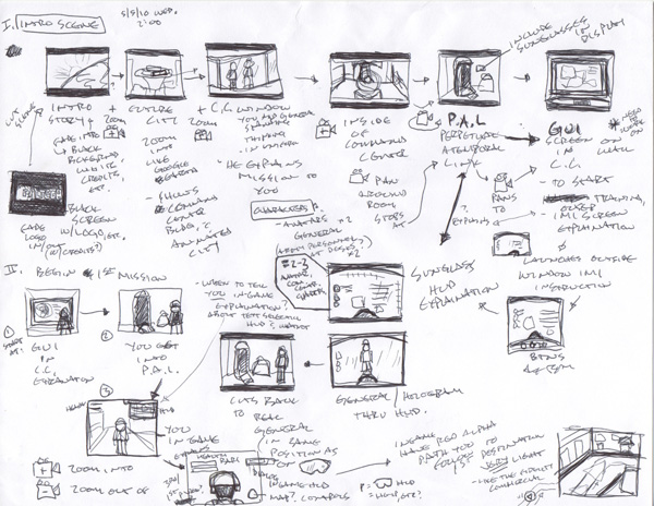 Idea generation and such for OTI game, game design, ploting action, storyboarding, scenario branching, animation, camera pans, character development