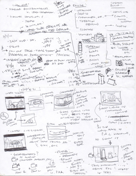 Idea generation and such for OTI game, game design, ploting action, storyboarding, scenario branching, animation, camera pans, character development